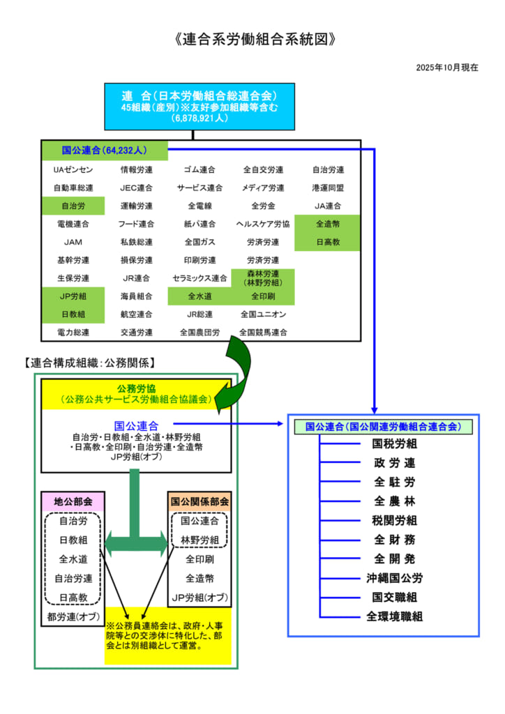 | 政労連(政府関係法人労働組合連合)は、特殊法人、独立行政法人、特殊法人から民間法人化された法人、財団法人、社団法人など、政府関係法人の労働組合53単組約1万5,000人が加盟する連合体です。 政労連は、同一産業に従事する産業別労働組合とは異なり、加盟する組合は、インフラ、農林水産、教育、公的金融、貿易・産業経済、雇用・労働、社会保障、運輸・観光、等々、幅広い分野の事業を展開する法人等の職員で組織されています。 組合員はそれぞれの職場で、国民生活の基盤を支えるべく、高速道路等のインフラ整備、水源林の管理・農水事業に関連する調査研究、奨学金、スポーツ振興、国際貿易振興、消費者トラブルの未然防止、能力開発や雇用支援、社保診療報酬の支払い、等を通じた様々な事業を精力的に展開しています。また、東日本大震災の復旧・復興、福島第一原子力発電所事故に関連する様々な事業にも取り組んでいます。 |